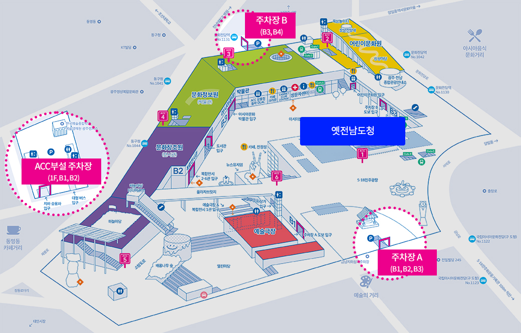 | A,B 주차장 | 08:00 - 22:00 | 1월 1일, 정기 휴관일 월요일 |